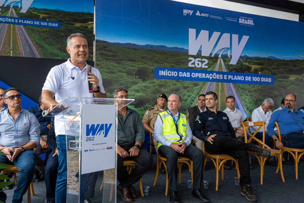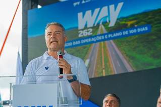 Sobre a Way-262: O Consórcio Rotas do Brasil S.A., formado pela gestora de investimentos Kinea e o Grupo Way Brasil, ganhou o leilão da Rodovia BR-262 em 31 de outubro de 2024, formando-se então a Way-262. A partir da assinatura do contrato de Concessão com o Governo Federal em 14 de fevereiro de 2025, a Way-262 assumiu por 30 anos a responsabilidade pela administração, recuperação, conservação, manutenção, implantação de melhorias e ampliação da rodovia. A concessão federal compreende o trecho de 438 km da BR-262, entre Betim, na região metropolitana de Belo Horizonte, e Uberaba, no Triângulo Mineiro. A rodovia é uma das mais importantes por ligar o estado de Minas Gerais de uma ponta a outra, atravessando pelas cidades: Betim, Juatuba, Mateus Leme, Florestal, Igaratinga, Pará de Minas, São Gonçalo do Pará, Conceição do Pará, Nova Serrana, Araújos, Bom Despacho, Moema, Luz, Córrego Dantas, Campos Altos, Ibiá, Araxá, Perdizes, Sacramento e Uberaba.